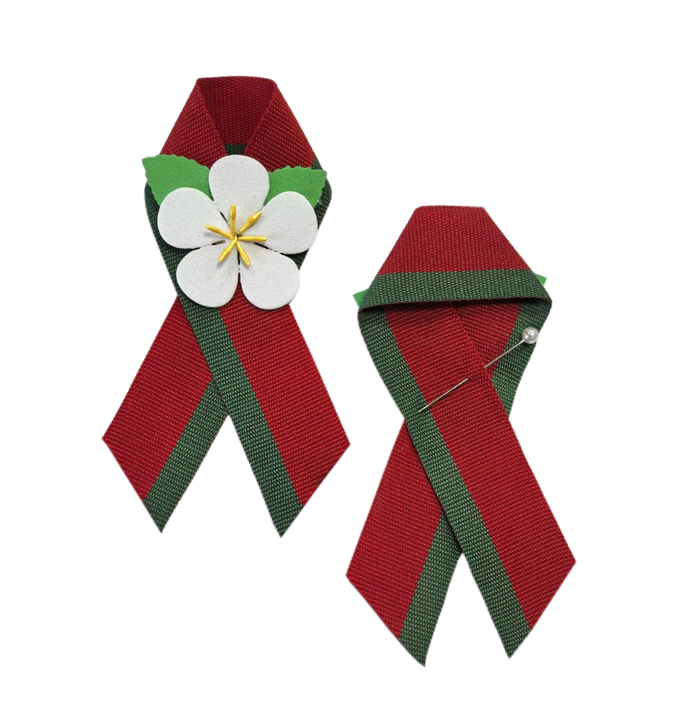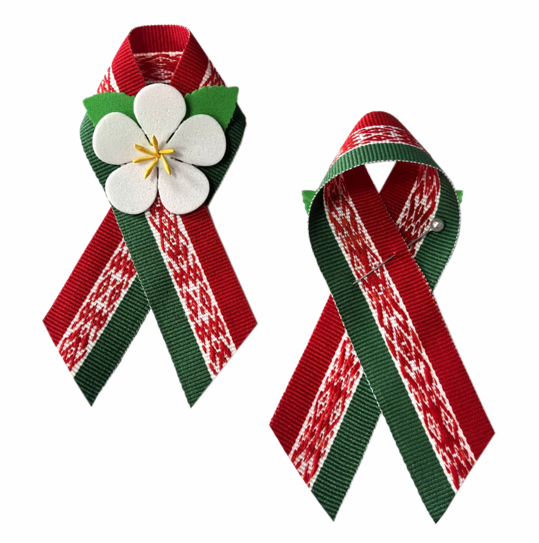 Материал: лента из ткани в национальных цветах флага Республики Беларусь с орнаментом, цветок из фоамирана с объемными тычинками.